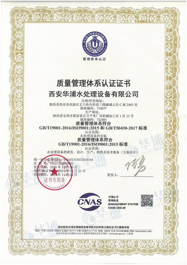 質量管理體系認證證書